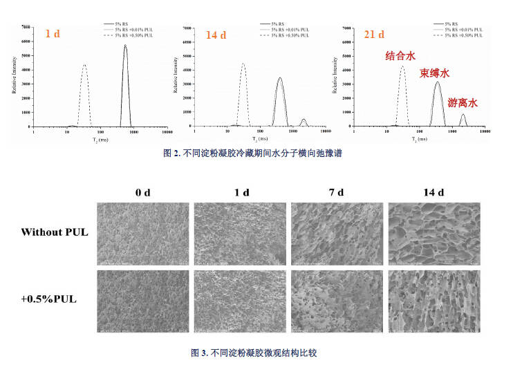 其中添加0.5%PUL的樣品中水分子橫向弛豫時(shí)間顯著低于空白樣品,且從橫向弛豫時(shí)間上看應(yīng)歸屬于結(jié)合水。