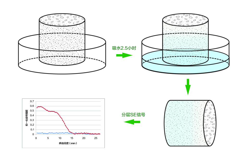 對(duì)于動(dòng)態(tài)樣品,需要快速測(cè)大孔孔隙里面的分層含水率和水分分布狀態(tài),可以通過空間編碼技術(shù)實(shí)現(xiàn),測(cè)得不同位置的含水率變化,通過觀察樣品吸水過程中的水分遷移,實(shí)現(xiàn)水分遷移動(dòng)態(tài)研究,分析其滲透吸水性能。