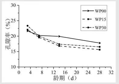 圖2 不同SAP摻量的CaO補償收縮水泥漿體孔隙率圖