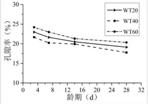 圖1 不同養(yǎng)護溫度的CaO補償收縮水泥漿體孔隙率圖