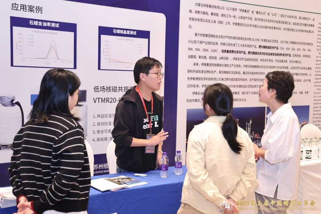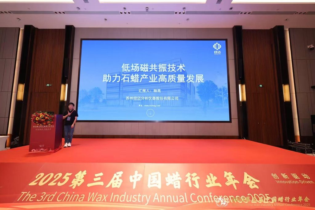 本次年會聚焦蠟行業(yè)高端化、國際化發(fā)展路徑及產業(yè)升級中的關鍵挑戰(zhàn),吸引了眾多行業(yè)專家與企業(yè)代表參與。蘇州紐邁分析儀器股份有限公司攜低場核磁共振技術參加本次會議,公司產品經理楊亮在會議上作了《低場磁共振技術助力石蠟產業(yè)高質量發(fā)展》 的專題報告。
