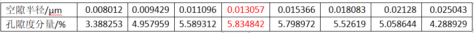 某多孔碳核磁法峰頂點(diǎn)處孔徑分布結(jié)果如下: