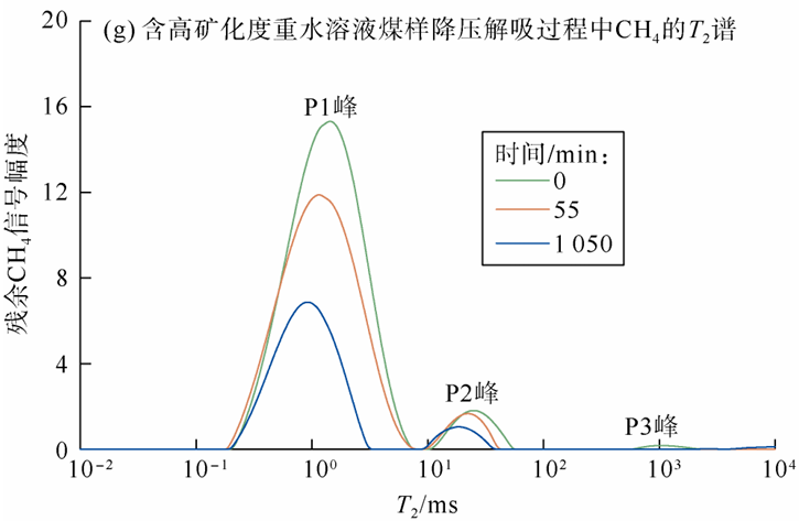 圖4?不同礦化度流體驅(qū)替平衡后降壓解吸過程中甲烷核磁共振弛豫譜