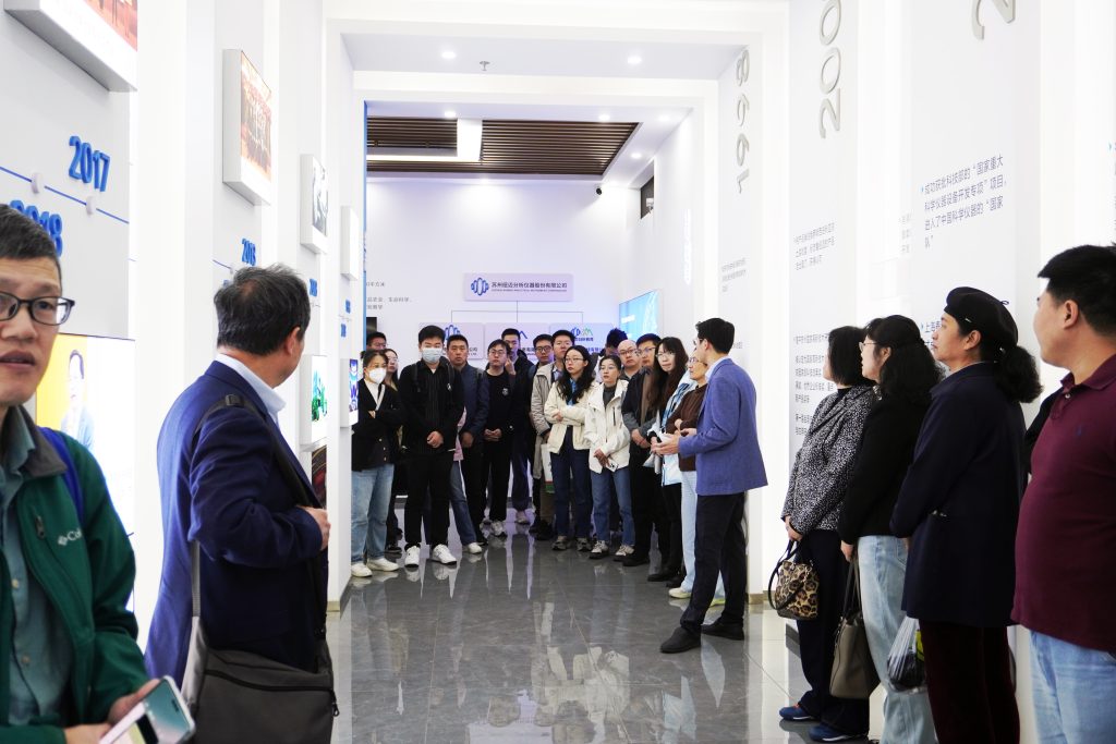 紐邁分析高層領導——董事長楊培強、總經(jīng)理李向紅、產(chǎn)品總監(jiān)高楊文、產(chǎn)品經(jīng)理丁皓等,攜手團隊成員,以滿腔熱忱迎接了與會嘉賓。在會議正式開始之前,產(chǎn)品經(jīng)理丁皓帶領與會師生參觀了紐邁分析公司的展廳,詳細介紹了紐邁分析二十一載的發(fā)展軌跡及其在產(chǎn)學研合作中的創(chuàng)新歷程,讓各位專家學者對紐邁分析的扎實的技術沉淀和一步步走來的歷史積淀有了深入的了解。并且,專家學者實地參觀了紐邁分析的生產(chǎn)現(xiàn)場和設備展示,針對儀器性能、測試技巧和分析手段進行了專業(yè)的技術交流討論,現(xiàn)場的專注氛圍令人印象深刻。