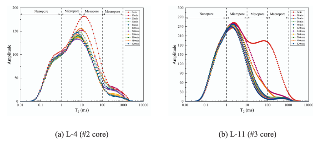 (3)核磁共振分析表明,驅(qū)水效率受孔隙結(jié)構(gòu)的控制。大孔中的水優(yōu)先被驅(qū)替,而納米孔和微孔則是主要的儲存空間,容納了高達90%的殘留水。這一定量結(jié)果突顯了從小孔中回收水的關(guān)鍵挑戰(zhàn)。