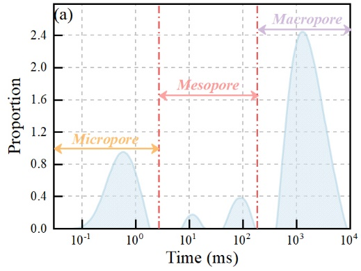 低場核磁共振因能完全表征孔隙結(jié)構、耗時短、以及測試過程中樣品無損壞等特點被廣泛用于煤樣孔滲性質(zhì)的研究。此次實驗使用的是蘇州紐邁分析儀器股份有限公司生產(chǎn)的型號為MicroMR12-150H NMR分析儀,主頻為12MHz,探頭線圈直徑為25mm,實驗溫度為25℃。采用CPMG序列,90°脈寬(P1)為13.52 us,