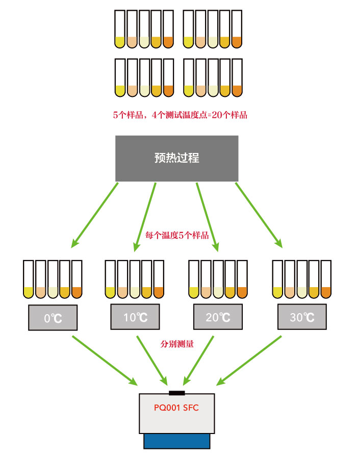 這個(gè)方法就是為每一個(gè)測(cè)試溫度準(zhǔn)備一個(gè)水浴,然后準(zhǔn)備不同批的樣品放置在不同的溫度的水浴中,即每一個(gè)樣品針對(duì)幾個(gè)不同的溫度必須準(zhǔn)備幾個(gè)相同的樣品放置在不同的水浴中,第一個(gè)樣品的第一個(gè)溫度測(cè)定后、立即測(cè)定第一個(gè)樣品的第二個(gè)溫度、然后測(cè)定第一個(gè)樣品的第三個(gè)溫度,待第一個(gè)樣品測(cè)試結(jié)束后,再開(kāi)始測(cè)定第二個(gè)樣品的第一個(gè)溫度……依此類推。