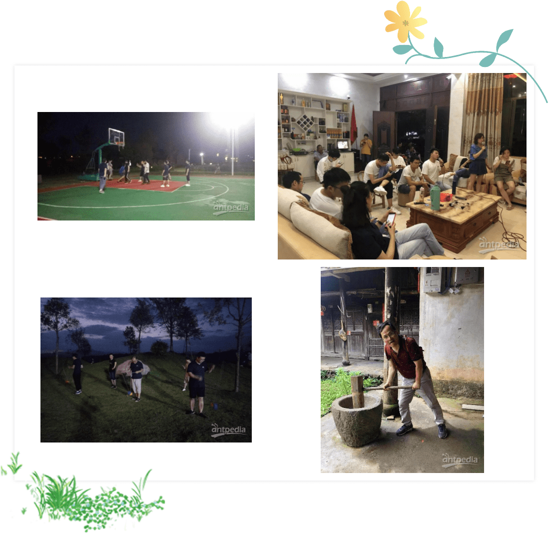夜宿農(nóng)家,同事們有的三五成群,自由漫步于山村水廊,看荷塘碧浪,山色空矇,體會(huì)到一種遠(yuǎn)離喧囂的靜謐;也有玩起空竹、打起籃球,揮灑汗水酣暢淋漓的,也有品嘗龍井、閑話家常的;有野外拾趣,留影山水的;更有一展歌喉,直抒胸臆的……平時(shí)寧?kù)o的山村,因紐邁團(tuán)隊(duì)的來(lái)到而顯得更平添了幾分生趣。而在這樣異于工作場(chǎng)景的閑逸場(chǎng)景中,大家放松心情,談工作、談生活、談理想、談收獲…….大家的心越靠越近……..
