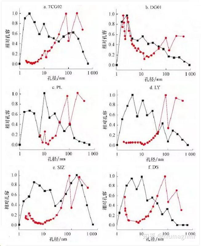 圖5:6組煤樣的NMPC與BJH孔徑分布對比