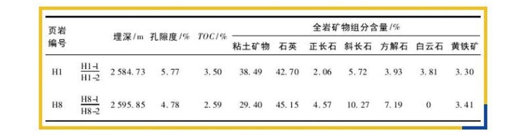 實驗樣品采自涪陵地區(qū)志流系龍馬溪組頁巖,樣品物性、TOC含量及礦物含量見下表。