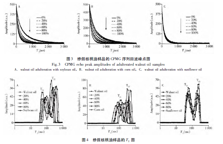 低場(chǎng)核磁共振技術(shù)因具有快速、無損、準(zhǔn)確,且無需任何化學(xué)試劑等優(yōu)點(diǎn),現(xiàn)已廣泛應(yīng)用于食品行業(yè)。下面簡(jiǎn)單介紹利用低場(chǎng)核磁共振分析儀,以純核桃油及摻入大豆油、玉米油、葵花油的摻假核桃油為研究對(duì)象,結(jié)合化學(xué)計(jì)量學(xué)方法分析處理樣品的( CPMG) 回波數(shù)據(jù)及實(shí)際摻假值,對(duì)核桃油品質(zhì)進(jìn)行評(píng)價(jià)。