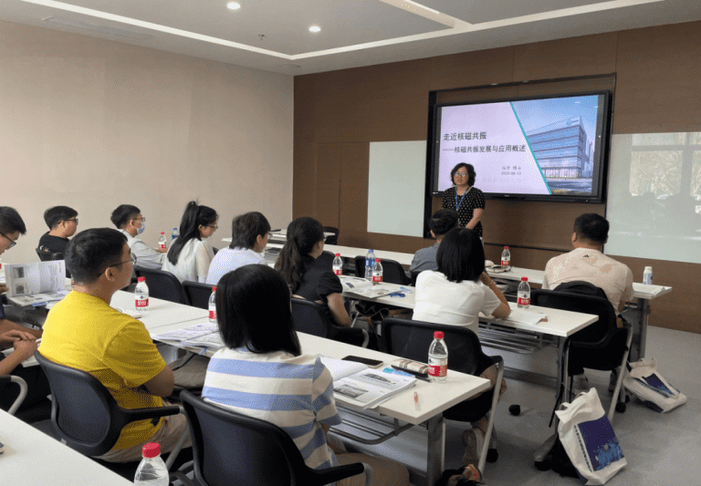 本次培訓(xùn)班采用理論與實(shí)踐相結(jié)合的授課方式。培訓(xùn)開始之初,上海泰紐科教馮博士、復(fù)旦大學(xué)姚老師、蘇州紐邁分析工程師們針對核磁共振技術(shù)發(fā)展、核磁共振成像及原理、變場核磁的原理及應(yīng)用、核磁共振分析應(yīng)用軟件、成像軟件、數(shù)據(jù)處理與圖像處理軟件等內(nèi)容進(jìn)行系統(tǒng)的講解。