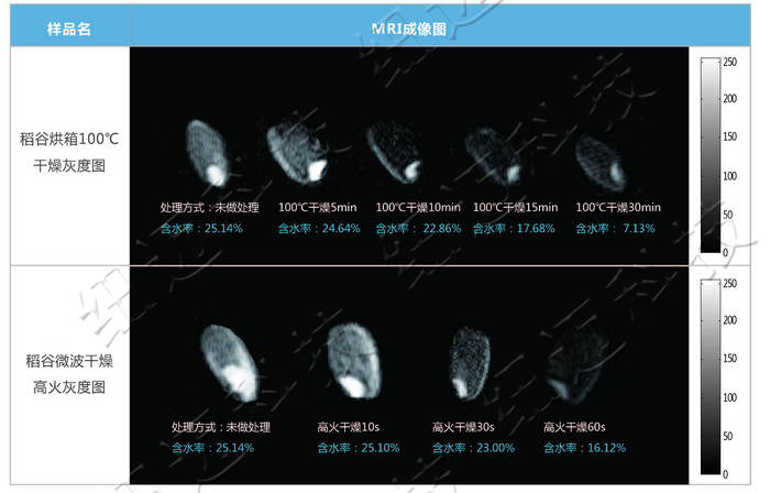 稻谷不同處理過程以及不同處理時(shí)間MRI成像
