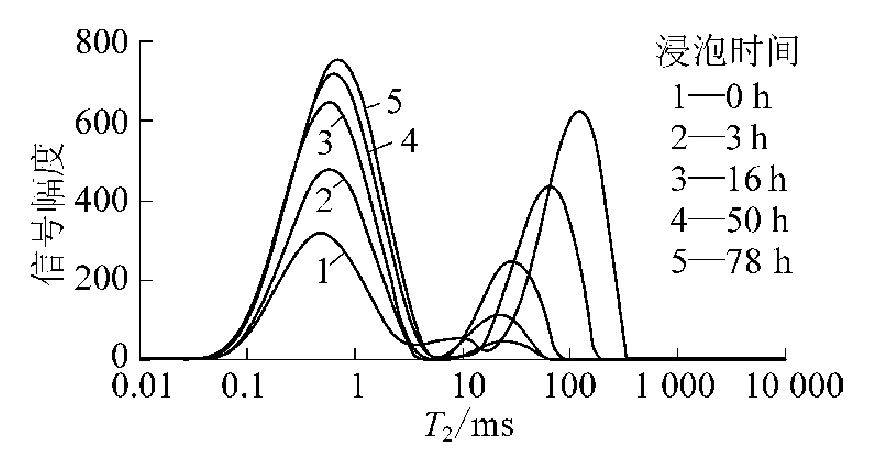 圖3 濕煤粉在4MPa壓力He條件下飽和水的T2譜變化曲線