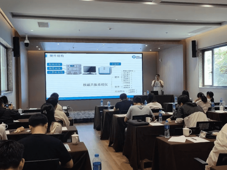 紐邁分析產(chǎn)品總監(jiān)高楊文向在場師生介紹了紐邁的發(fā)展歷程、產(chǎn)品應(yīng)用領(lǐng)域、低場磁共振技術(shù)原理等
