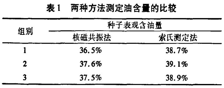索氏測(cè)定法按照GB5512—85測(cè)定法進(jìn)行。以核磁共振技術(shù)獲得油含量測(cè)定值的麻瘋樹種子為材料,將兩種方法測(cè)得的結(jié)果進(jìn)行比較。