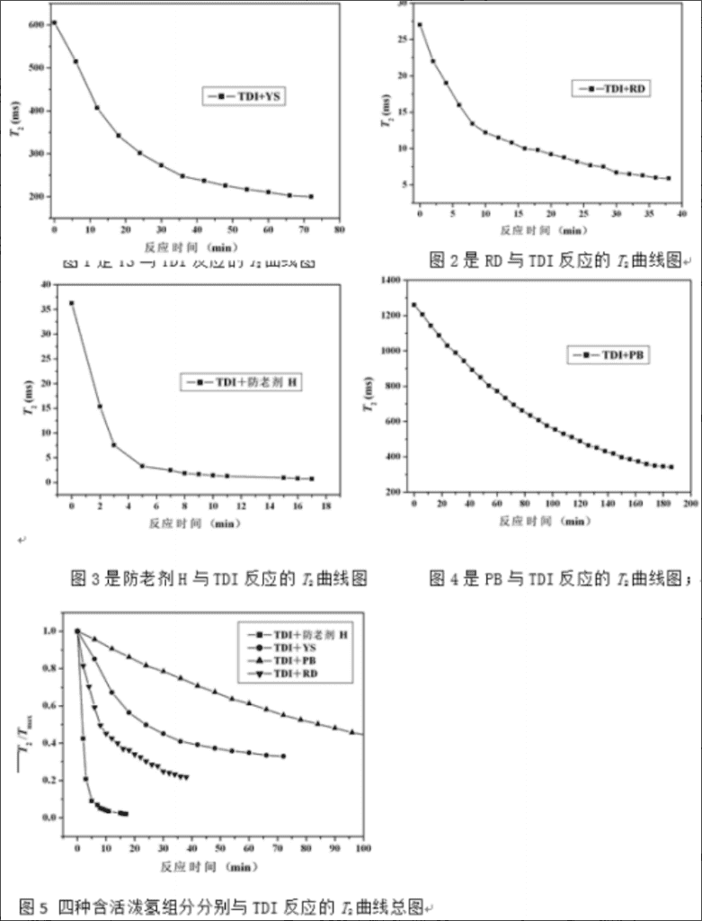 1) 獲得TDI與四種含活潑氫組分的反應(yīng)活性順序?yàn)椋悍览蟿〩 > RD > YS > PB。