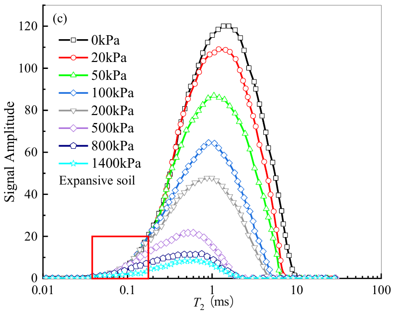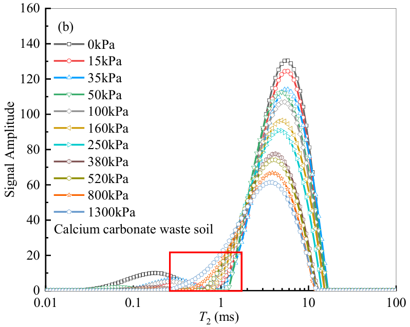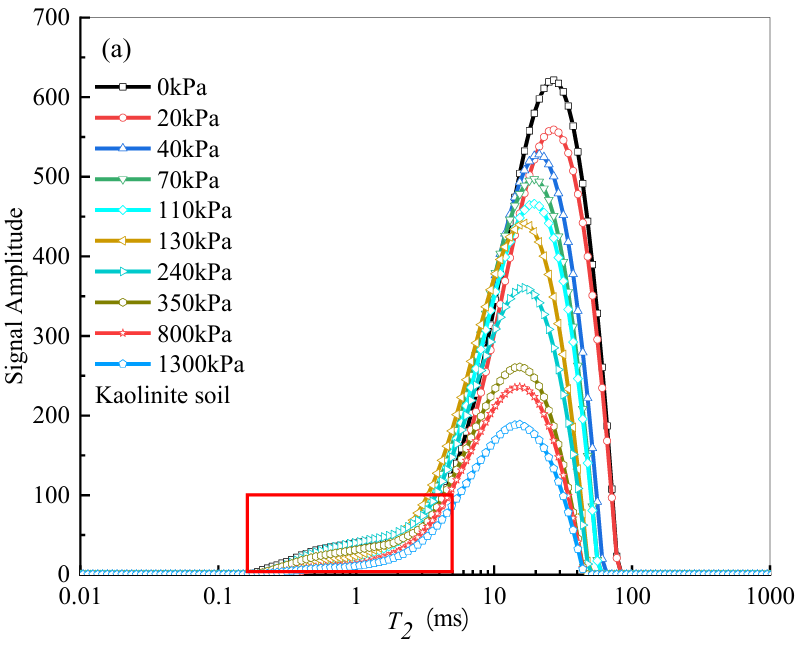 土壤間差異:不同土壤的T?曲線變化特征存在差異,這主要歸因于顆粒尺寸分布、初始含水量、干密度和礦物成分的不同所導(dǎo)致的孔隙結(jié)構(gòu)多樣性。例如,膨脹土的T?值主要分布在0.04至10 ms之間,而高嶺土的分布范圍更寬0.1至85 ms。