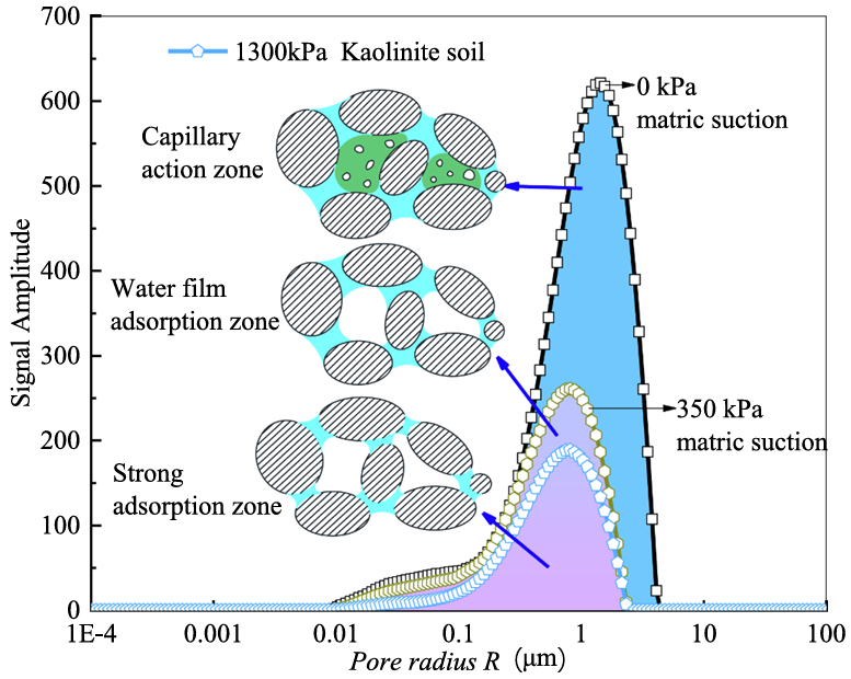 土壤-水特征曲線是描述含水量與基質(zhì)吸力關(guān)系的關(guān)鍵曲線,對于非飽和土理論和工程應(yīng)用至關(guān)重要。由于含水量顯著影響非飽和土的強度,因此需要從實驗上研究水分在土壤基質(zhì)內(nèi)的分布。然而,盡管關(guān)于SWCC的研究眾多,但很少有研究探索支撐該曲線的水分分布特征。具體來說,在不同基質(zhì)吸力下,保留在不同半徑孔隙中的水對吸力的貢獻不同,但孔隙水的組成、分布模式以及殘余水的相對含量仍不清楚。