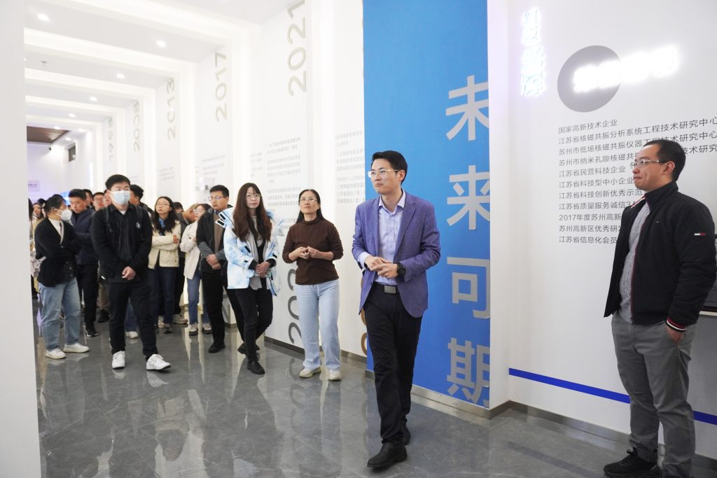 紐邁分析高層領導——董事長楊培強、總經(jīng)理李向紅、產(chǎn)品總監(jiān)高楊文、產(chǎn)品經(jīng)理丁皓等,攜手團隊成員,以滿腔熱忱迎接了與會嘉賓。在會議正式開始之前,產(chǎn)品經(jīng)理丁皓帶領與會師生參觀了紐邁分析公司的展廳,詳細介紹了紐邁分析二十一載的發(fā)展軌跡及其在產(chǎn)學研合作中的創(chuàng)新歷程,讓各位專家學者對紐邁分析的扎實的技術沉淀和一步步走來的歷史積淀有了深入的了解。并且,專家學者實地參觀了紐邁分析的生產(chǎn)現(xiàn)場和設備展示,針對儀器性能、測試技巧和分析手段進行了專業(yè)的技術交流討論,現(xiàn)場的專注氛圍令人印象深刻。