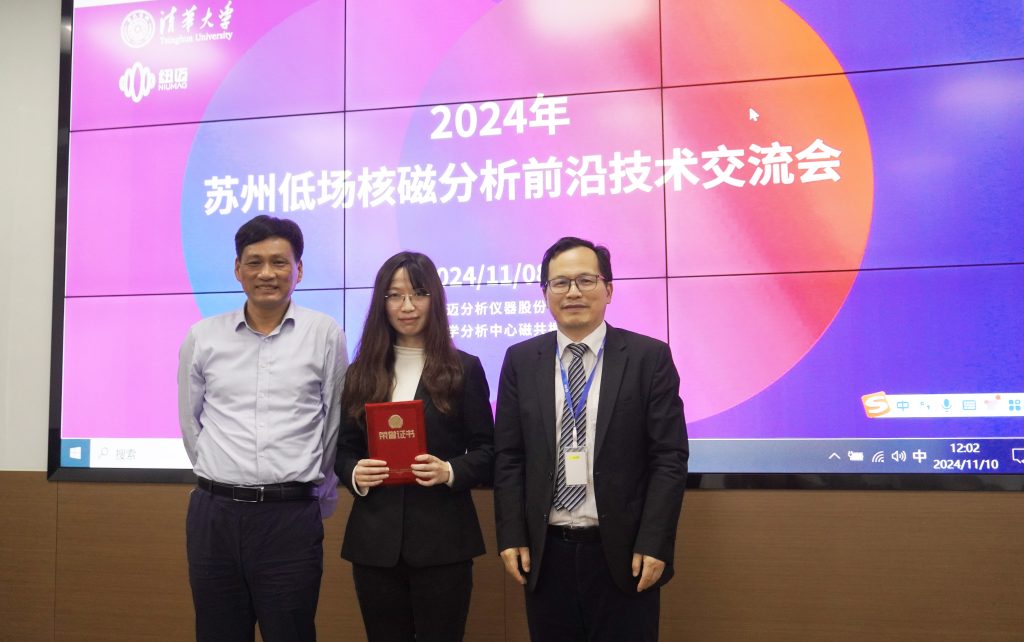 特別值得一提的是,在本次低場核磁分析前沿技術交流會上,紐邁公司舉行了一場隆重的頒獎儀式,表彰了清華大學陳莉莉博士的杰出貢獻。陳莉莉博士以第一作者身份在《Science》雜志上發(fā)表了題為《A hyperelastic hydrogel with an ultralarge reversible biaxial strain》的學術論文,該研究基于蘇州紐邁分析公司的設備支持,利用低場核磁共振技術對水凝膠進行了表征,這標志著使用紐邁設備的研究成果首次登上《Science》雜志。為此,紐邁公司特向陳莉莉博士頒發(fā)了榮譽證書和獎金,并將持續(xù)支持、表彰陳莉莉博士利用低場核磁技術發(fā)表《Nature》、《Science》正刊等高水平期刊學術文章。我們期待并鼓勵更多基于低場核磁技術的卓越研究能夠涌現(xiàn),并在國際頂級學術期刊上大放異彩。