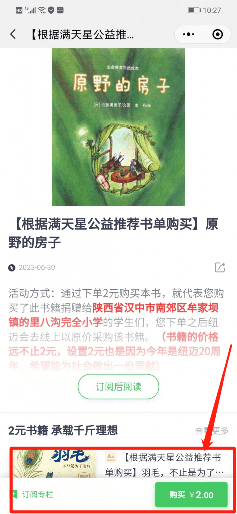 本次活動純公益性質,設置2元是因為今年正值紐邁20周年,所有書籍價格均不止2元。您下單后,紐邁會通過正規(guī)渠道,線上購買正版書籍贈送于里八溝的孩子們。