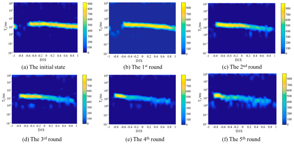 (5)在高溫高壓CO2驅(qū)油裝置中集成在線T2譜監(jiān)測系統(tǒng),實現(xiàn)了驅(qū)替過程中流體運移的原位無損監(jiān)測,顯著提升采收率動態(tài)數(shù)據(jù)的可信度。
