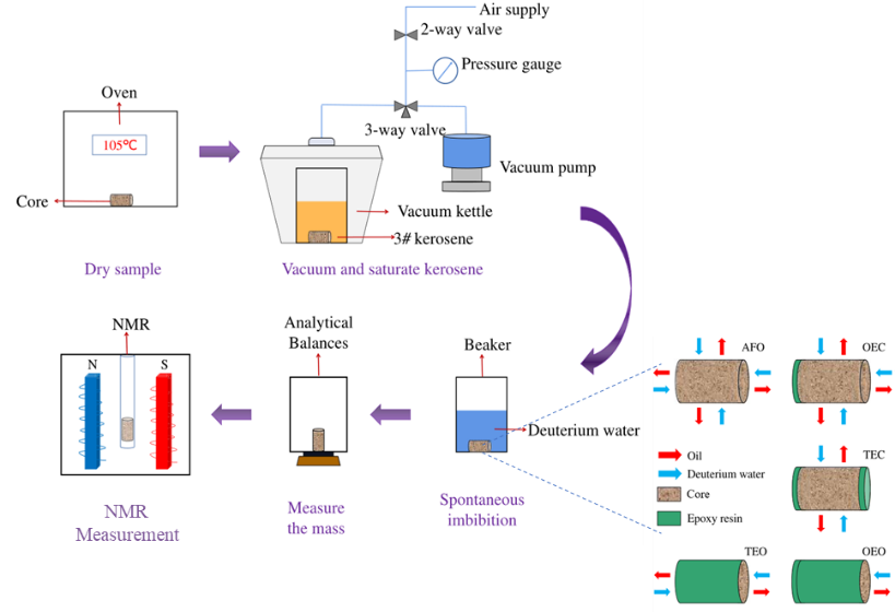 圖2核磁共振自發(fā)滲吸實驗過程示意圖(Wang et al. 2022)
