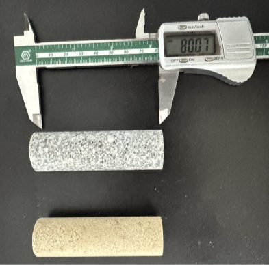 制備了同等規(guī)格的25mm×80mm的花崗巖與砂巖圓柱樣,將花崗巖和砂巖樣品放入干燥爐中,在105℃下干燥72小時,以確保所測試樣達到相對干燥的狀態(tài)。