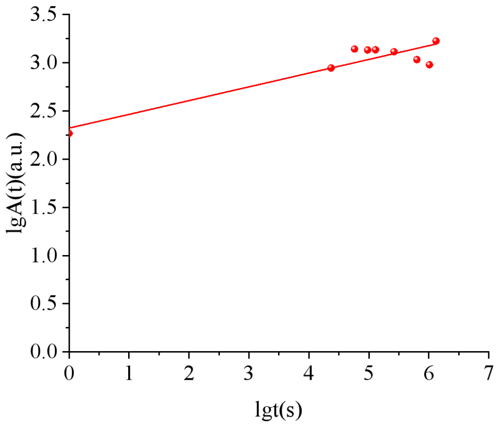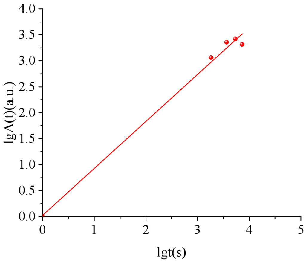 從公式可以看出,毛細管吸收長度h與時間t的關系為0.5的冪,即lgh≈lgt。假設吸收的水體積V(t)
