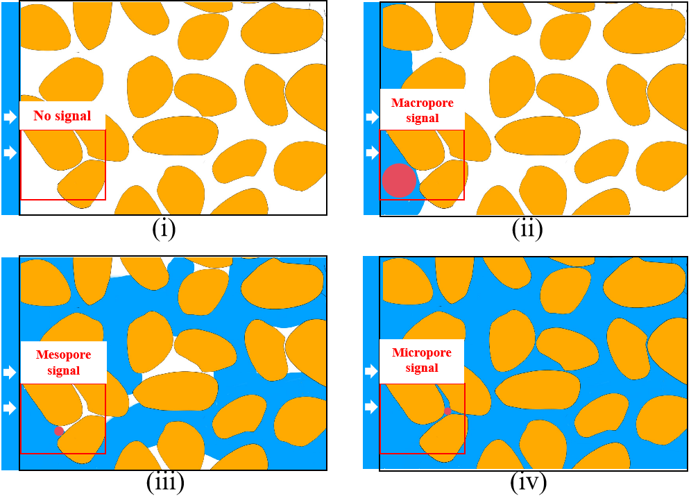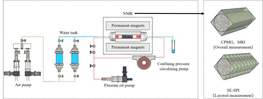 利用低場核磁共振(NMR)測試裝置對兩種典型的低滲透(花崗巖)和高滲透(砂巖)巖石中的水遷移過程進行了實時監(jiān)測。許多實時核磁共振測量技術,包括整體T2,分層T2,并進行MRI成像,以表征圍壓和水壓下的水遷移過程。實驗揭示了一些有趣的結果。