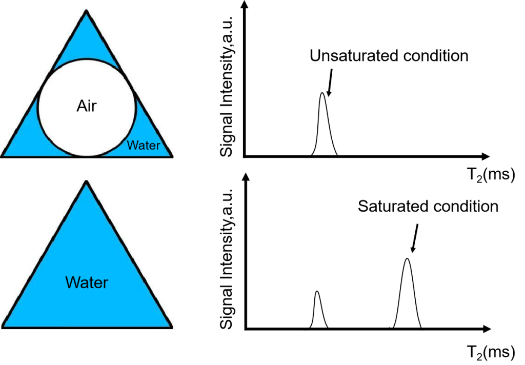 圖12 非飽和和飽和多孔介質(zhì)中T2分布的比較