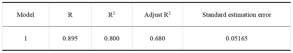 采用SPSS軟件對多元線性回歸模型進行擬合度和線性關(guān)系分析。SPSS生成的模型匯總表如表3所示。