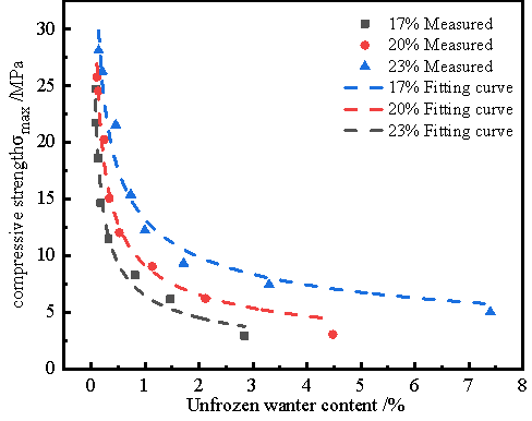 圖6未凍水與凍土抗壓強度的關系曲線