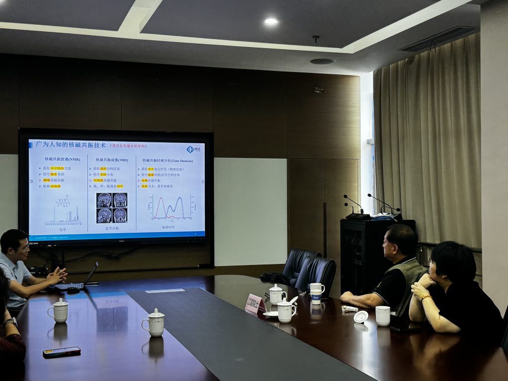 參觀結(jié)束后,雙方在會議室進(jìn)行了深入的座談交流。聚焦于低場核磁技術(shù)在材料科學(xué),特別是功能界面材料、多孔材料等前沿方向的深度應(yīng)用。